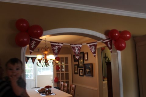 We had a football banner (courtesy of the dollar tree) hanging in the archway and above the windows. (red balloons covered the tape holding the banner)